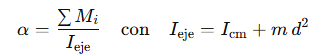 Cada músculo produce un torque Mi=Fi×ri, donde Fi es la fuerza de tracción y ri el brazo de palanca. Gracias a la invariancia de los pares de fuerzas bajo traslaciones a ejes paralelos, todos los momentos musculares pueden sumarse en un eje común para obtener el torque neto ∑Mi. La aceleración angular α del segmento viene dada por: